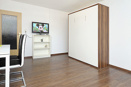 - Betten – besondere Eigenschaften: einige Wohnungen sind im Wohnraum mit einem modernen Schrankbett ausgestattet, welches normale Matratzen hat und tagsüber mit nur einem Handgriff zugeklappt werden kann, so dass man mehr Platz hat.