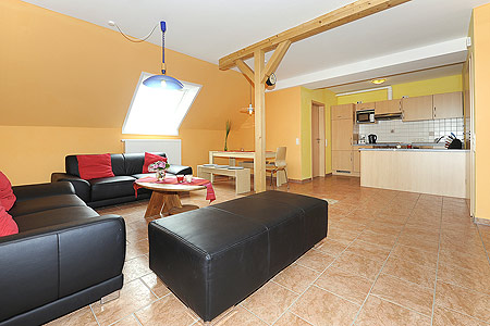 - Wohnraum mit integrierter Küche