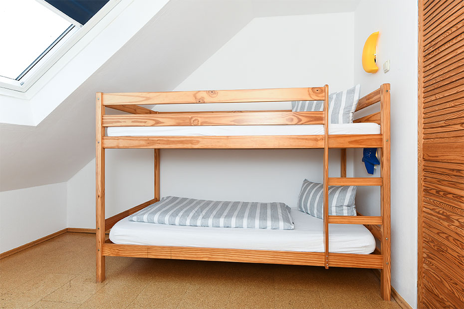 - Verdunkelung: Verdunklungsrollos in den Schlafräumen